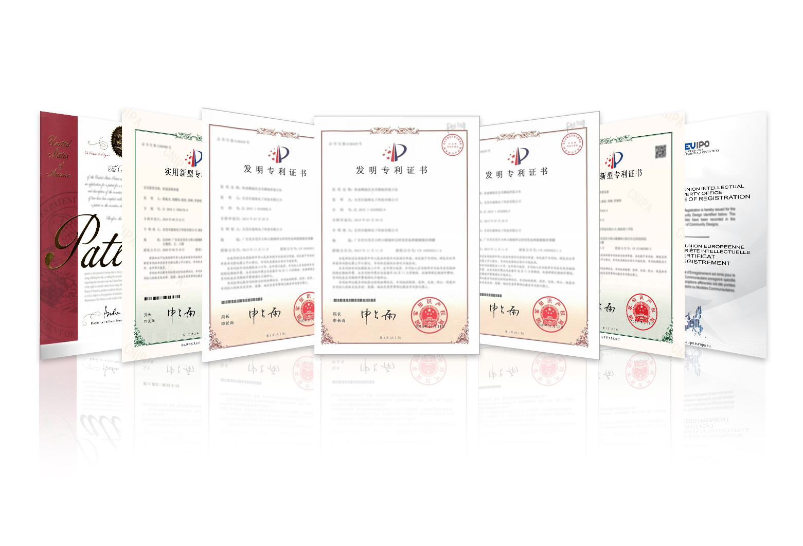 多類實(shí)用新型專利證書(shū)